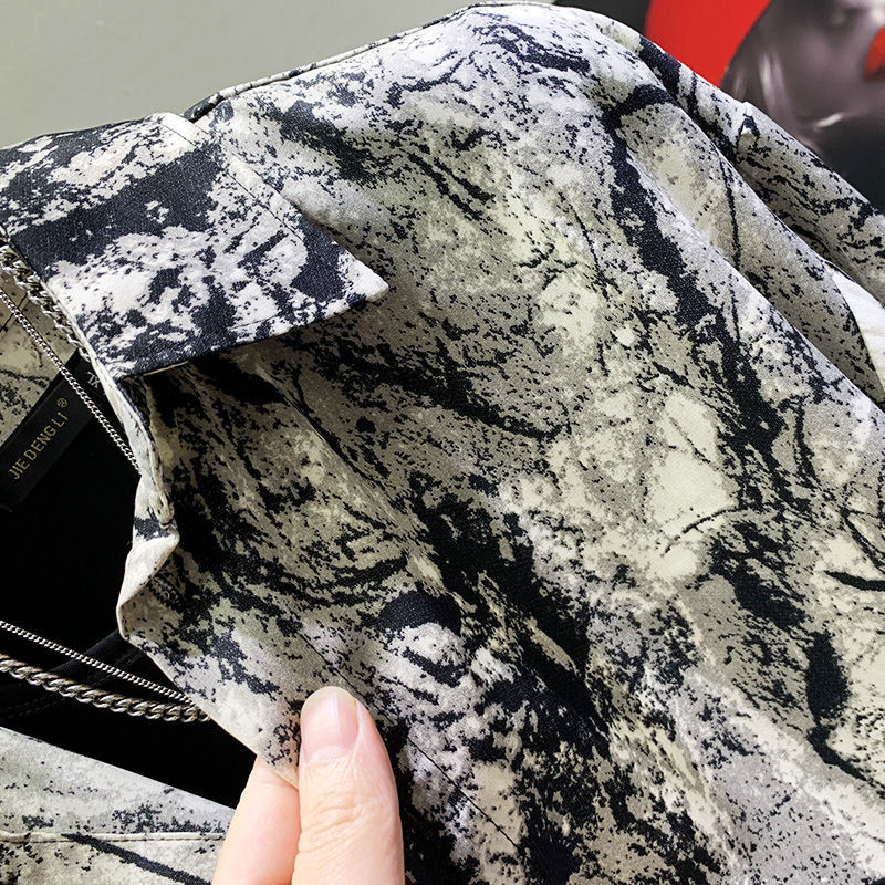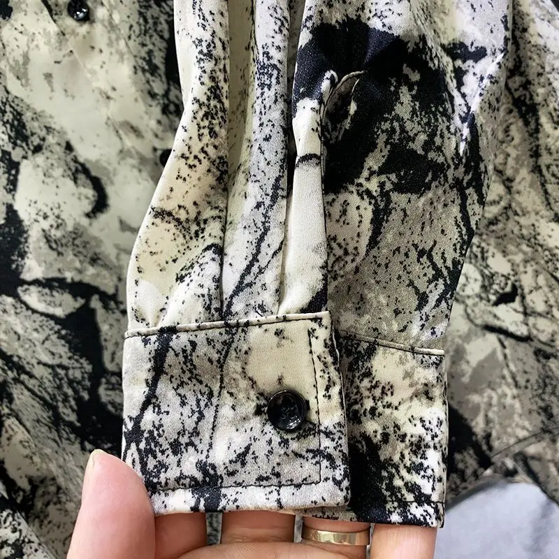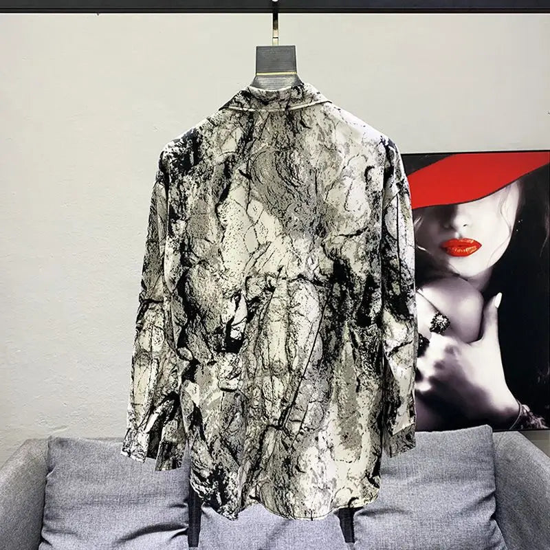 Chemise homme vintage col rabattu imprimé ample – Hauts printemps mode décontracté boutons manches longues