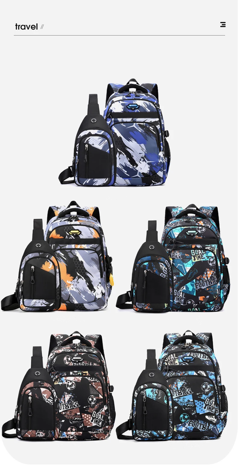Sac à dos football cool 2 pièces – avec sac poitrine, capacity, cartable simple lycée mixte .