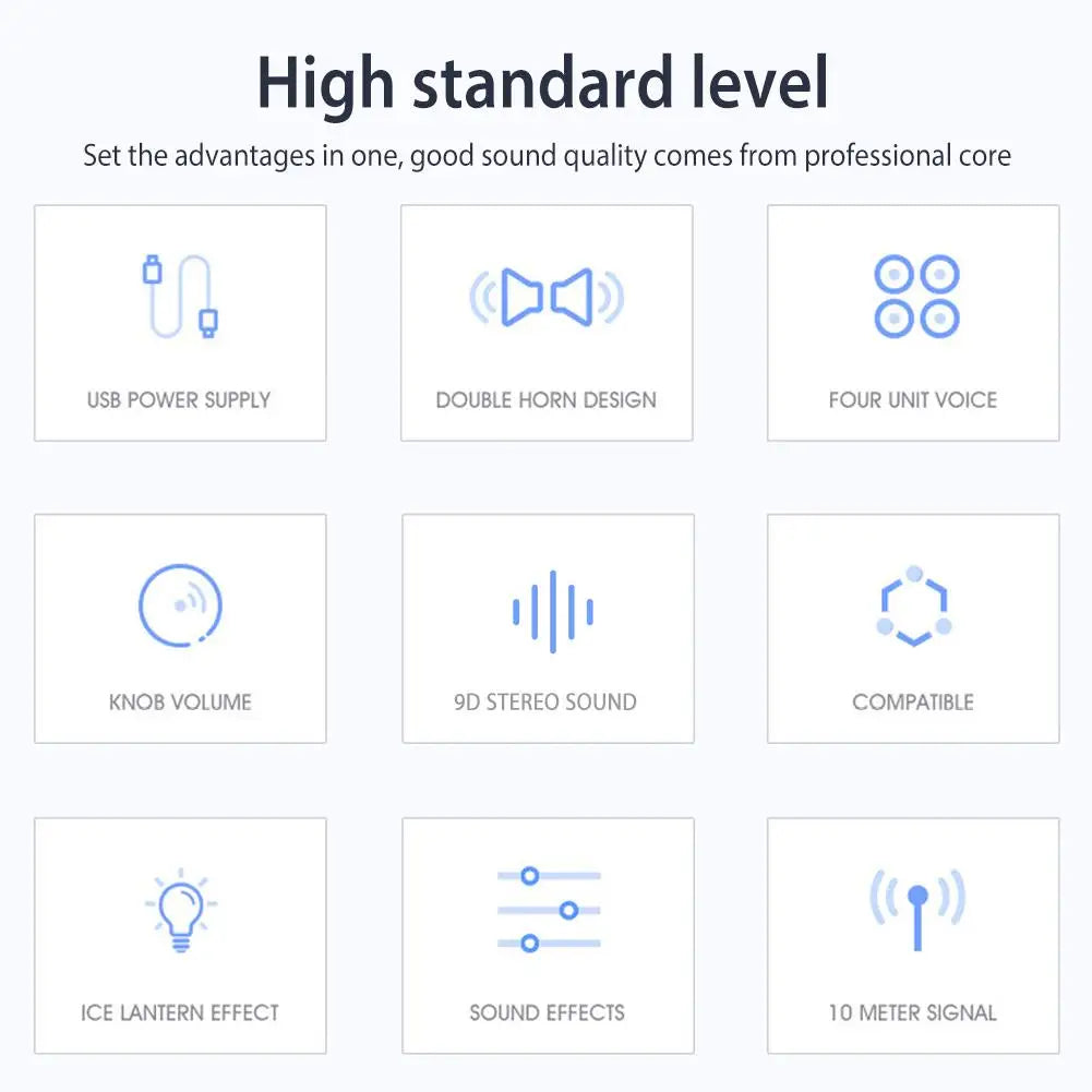 1.Son stéréo 9D : avec une qualité sonore surround à 360 degrés, 2 haut-parleurs et 2 conduits d'air, 4 unités de son, un volume stéréo 4D, vous pouvez profiter d'une expérience de niveau cinéma et d'une qualité sonore de haute qualité.