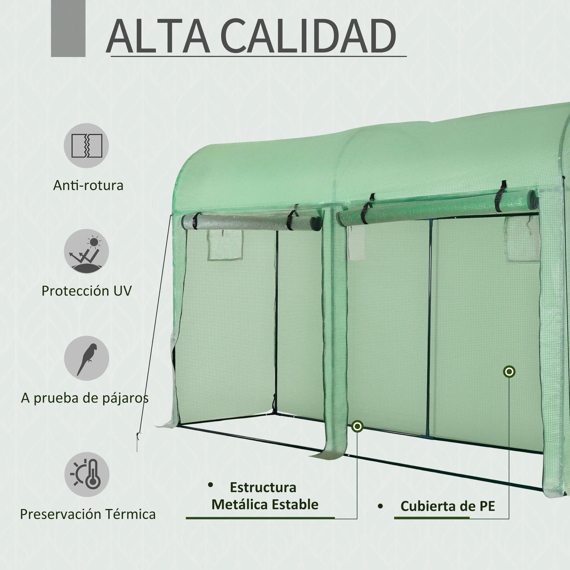 Si vous aimez planter et avoir vos cultures, cette serre Outsunny peut être une bonne acquisition. Si vous recherchez une serre de taille compacte, vous allez adorer cette serre. De plus, il a un design très pratique, grâce à ses deux portes avant à rouleaux et 4 fenêtres (2 arrière et 1 de chaque côté). Fabriqué en acier solide et couvercle PE avec protection UV pour protéger vos plantes contre les rayons nocifs du soleil.