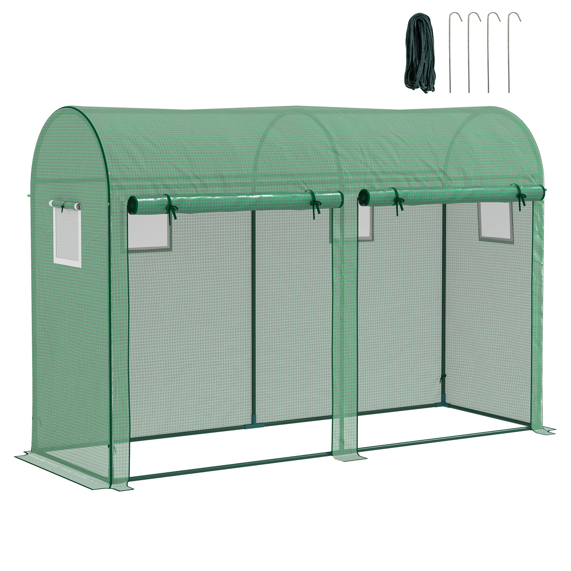 Serre de jardin tunnel Outsunny 300x100x200 cm verte, avec porte roulante et 4 fenêtres en PE et acier robuste