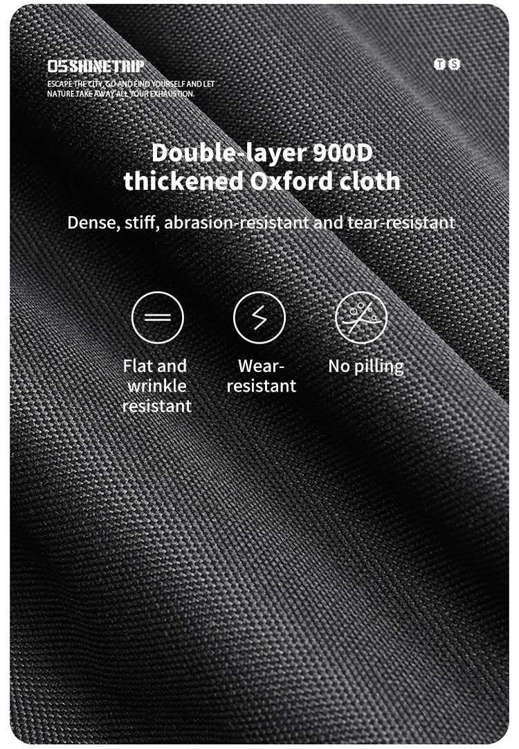 5.Tissu Oxford épais 900D double couche, la qualité d'une déchirure dense et dure et résistante à l'usure.