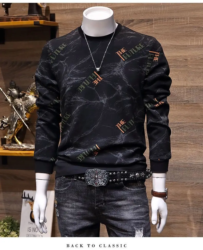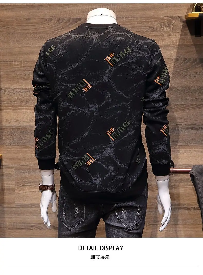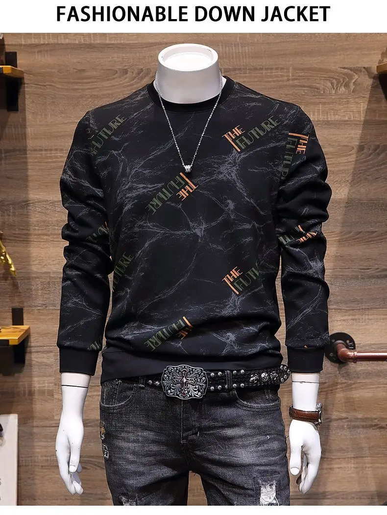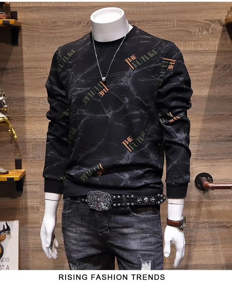 Sweat-shirt Homme Col Rond – Style Coréen Tendance , Slim, Imprimé, Look Jeune, Veste Automne