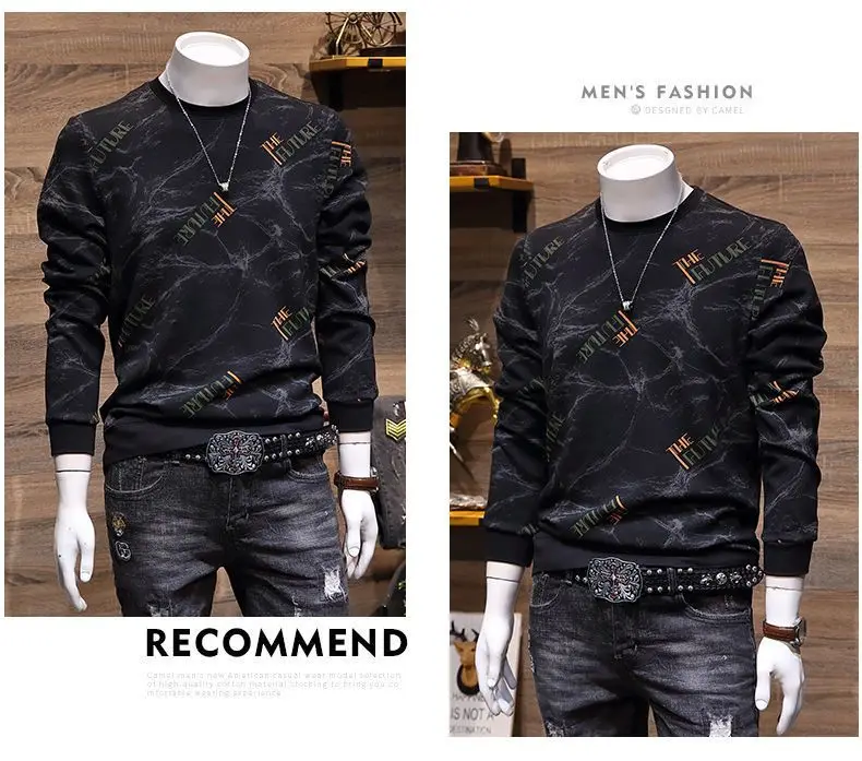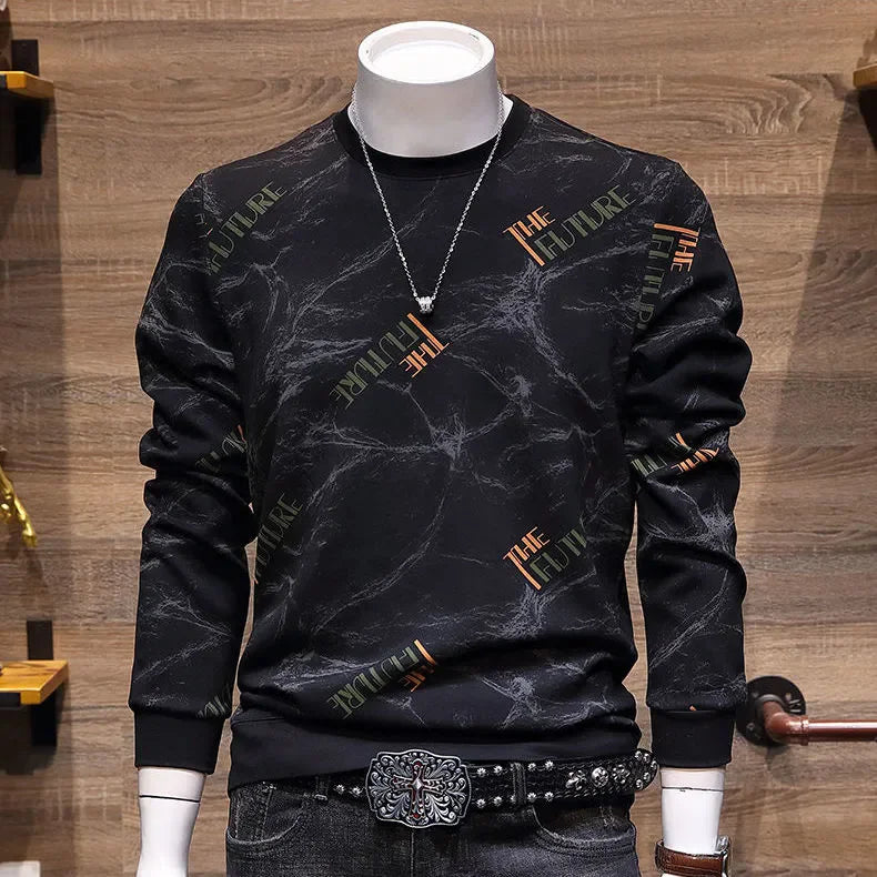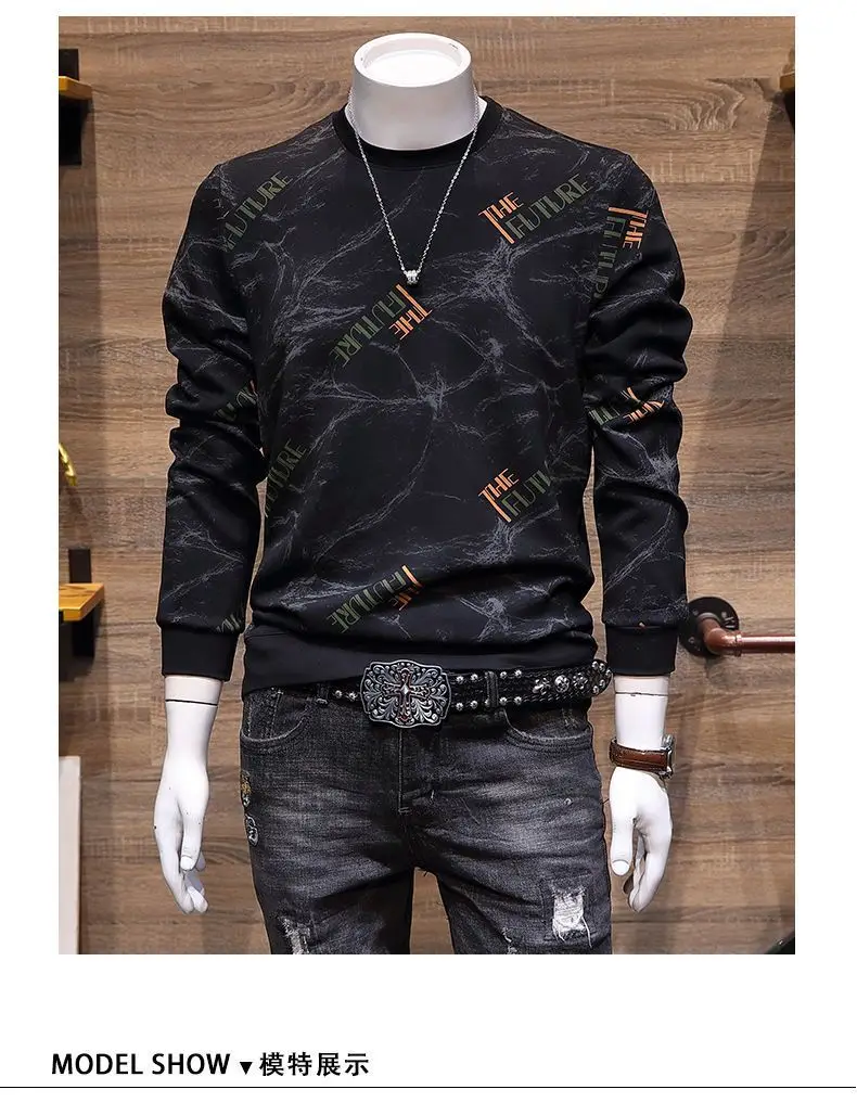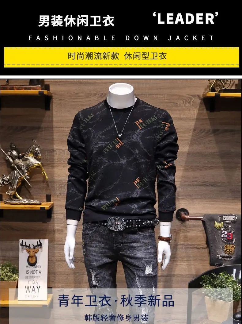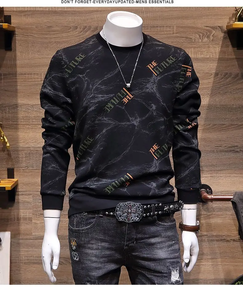 Sweat-shirt Homme Col Rond – Style Coréen Tendance , Slim, Imprimé, Look Jeune, Veste Automne