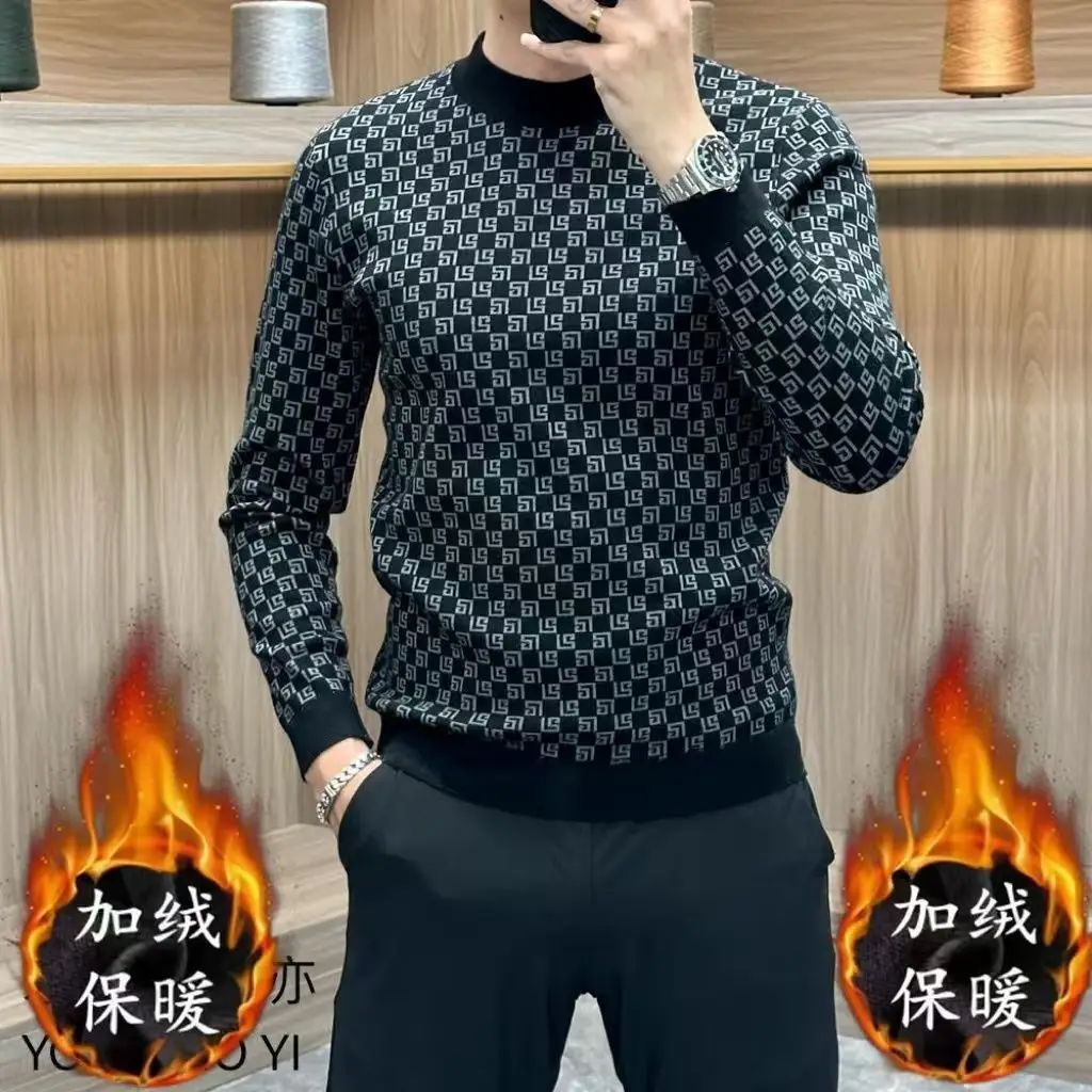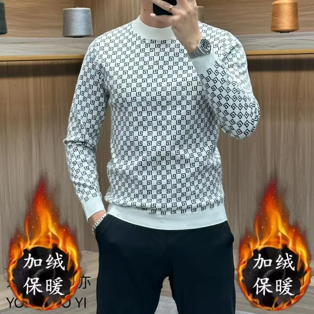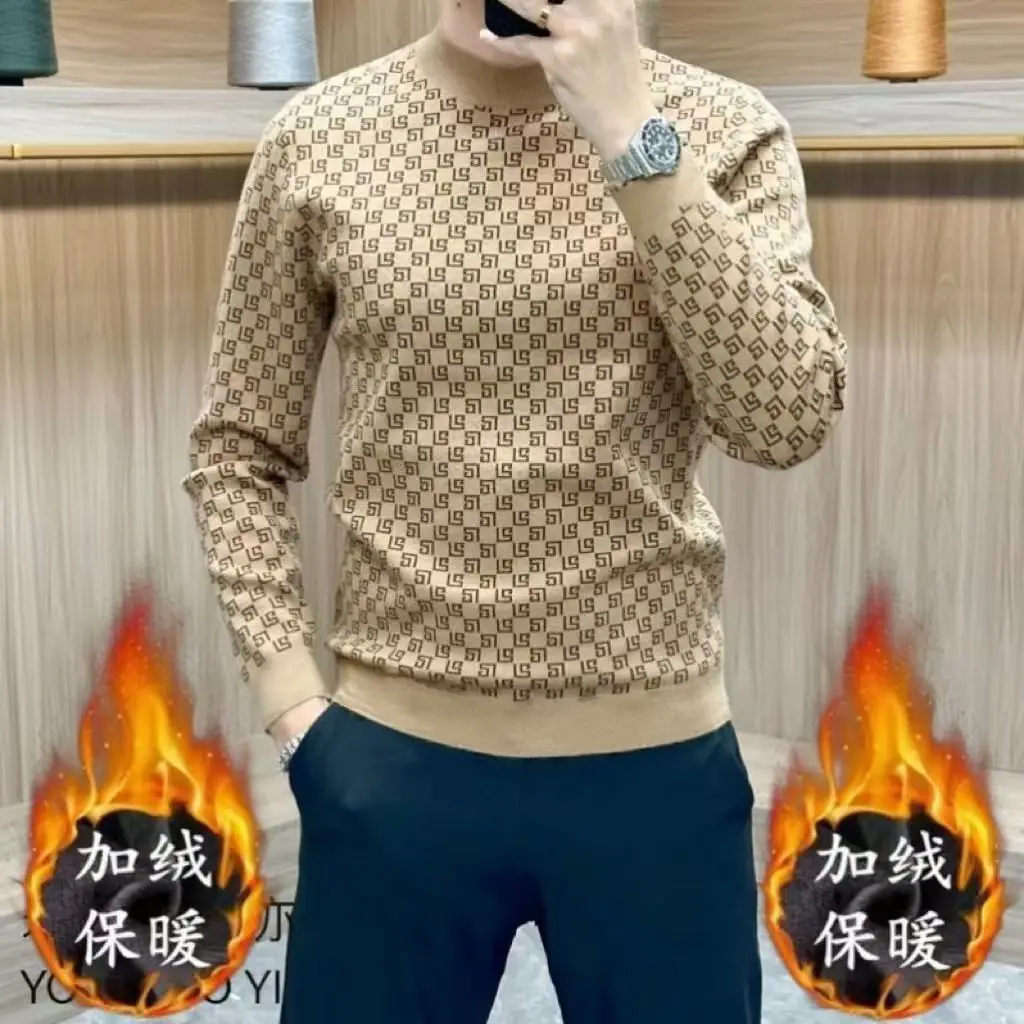 T-shirt Homme Épais à Manches Longues – Pull Chaud décontracté, Col Rond, Mode Coréenne Smiley, Automne Hiver, Nouveauté Tendance