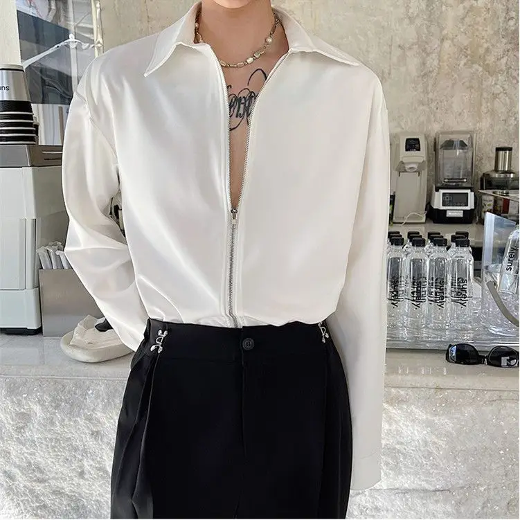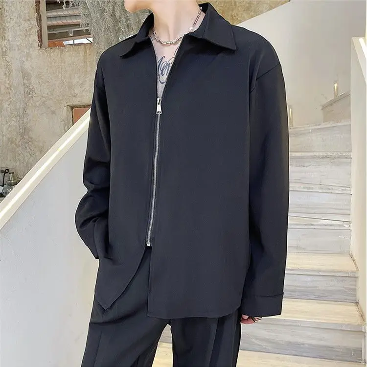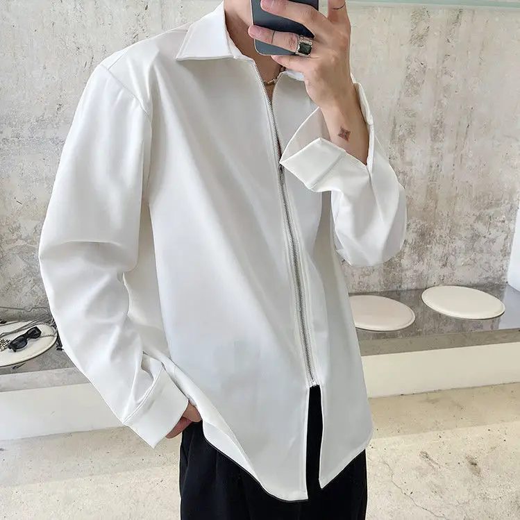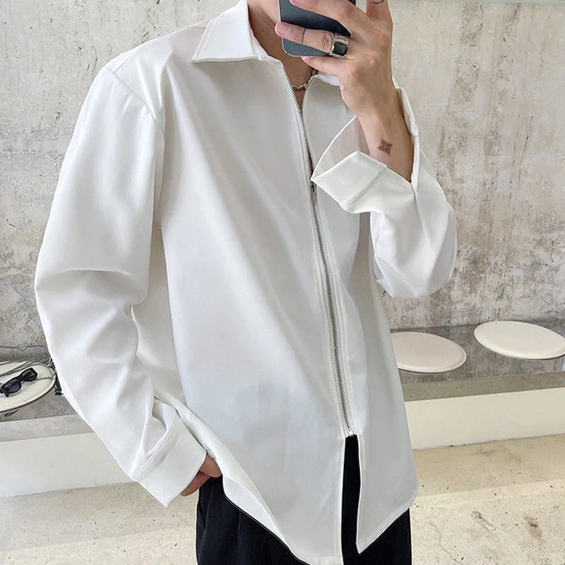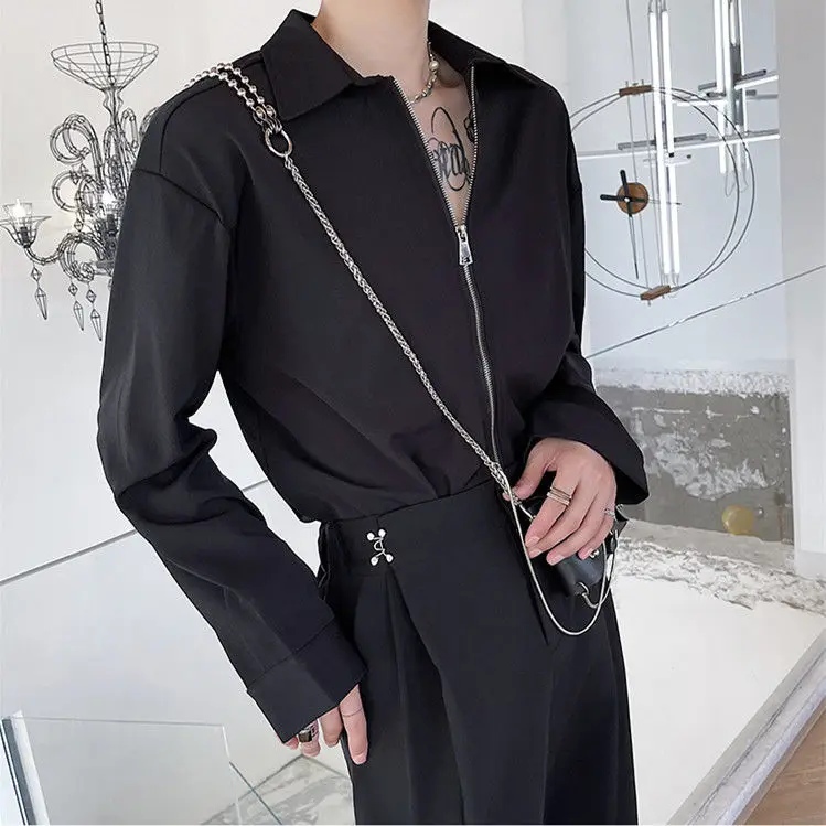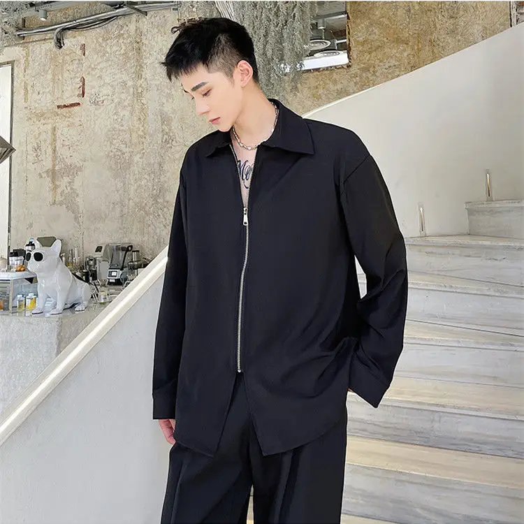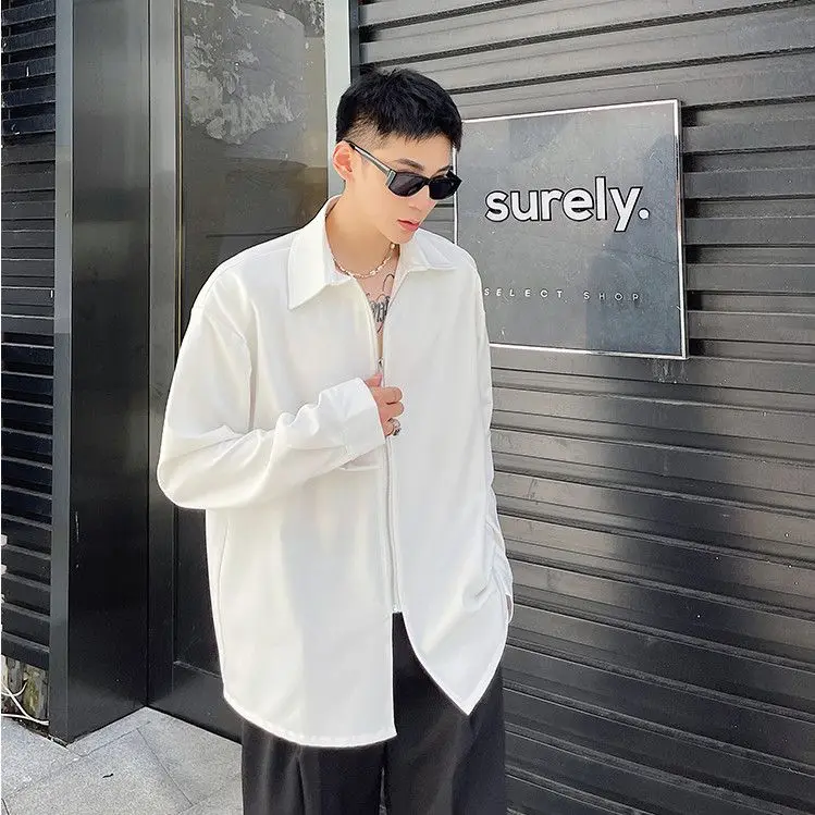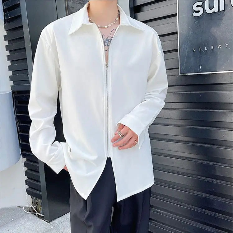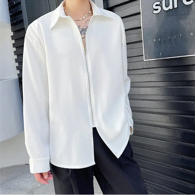 Chemises homme décontractées col rabattu, fermeture éclair