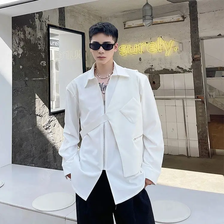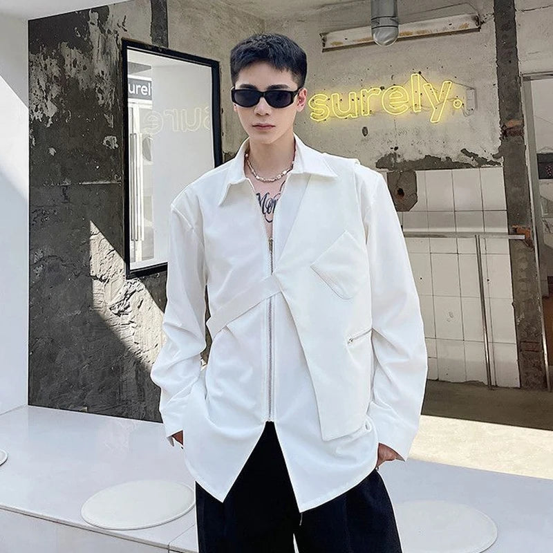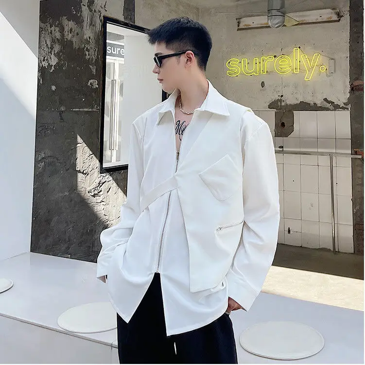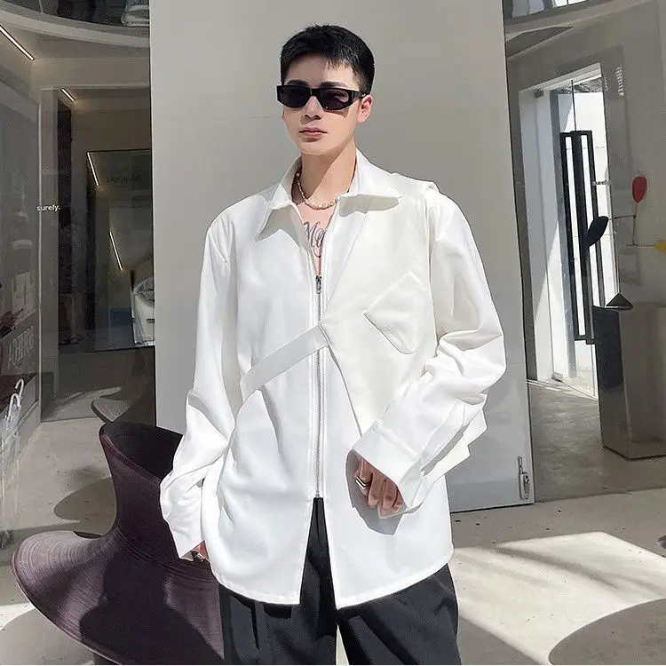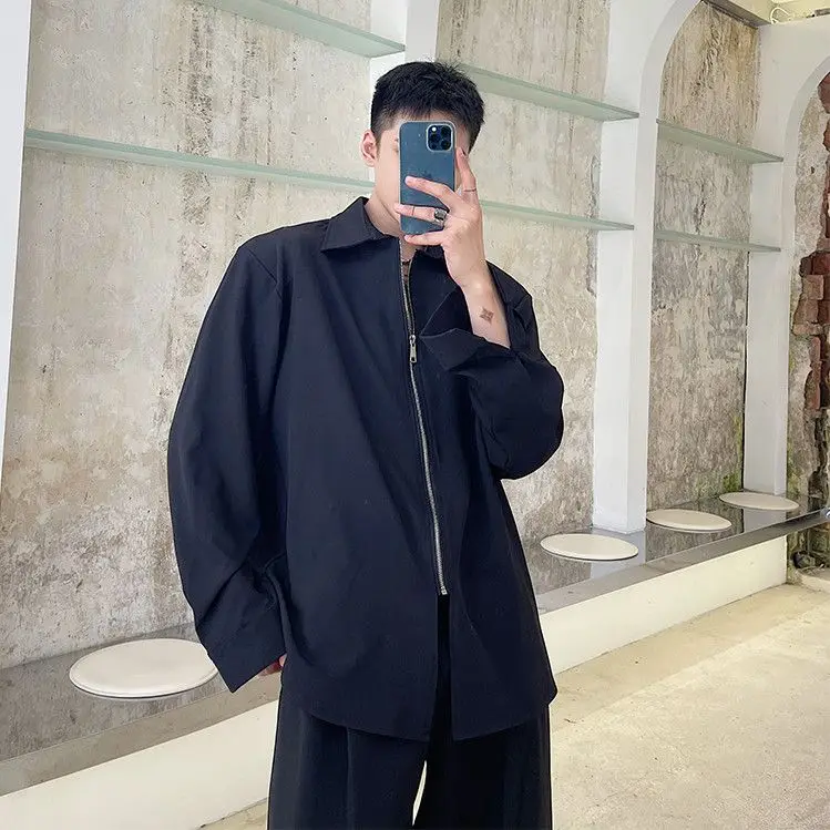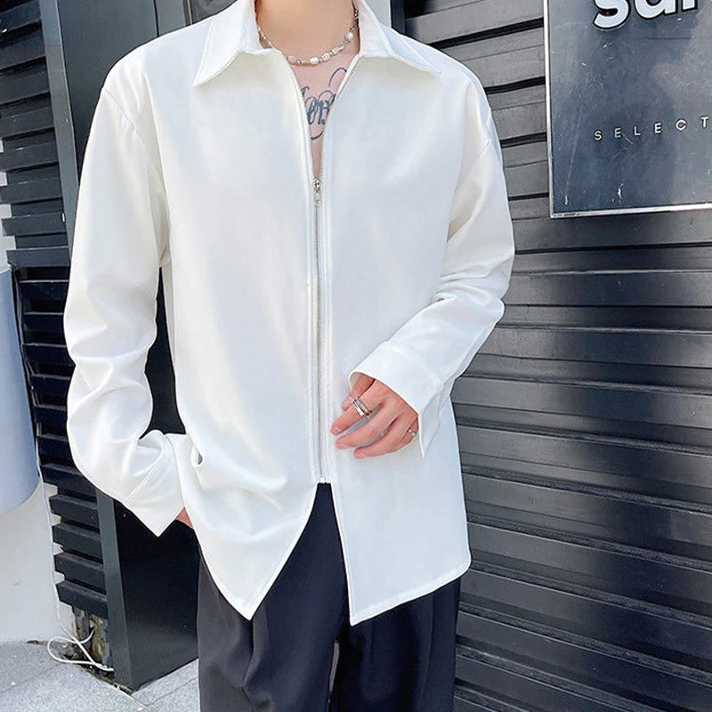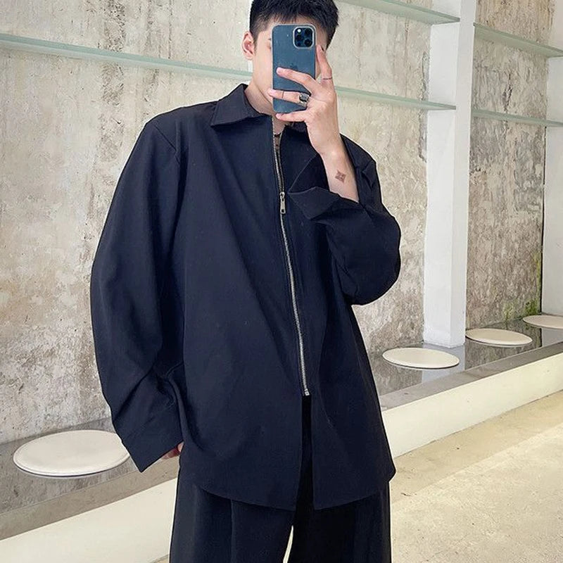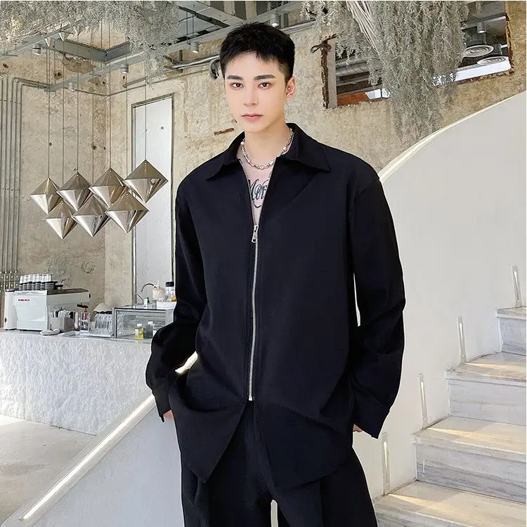 Chemises homme décontractées col rabattu, fermeture éclair